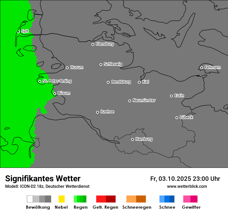 Es tritt Dauerregen auf. Dabei werden Niederschlagsmengen zwischen 30 l/m² und 45 l/m² erwartet.